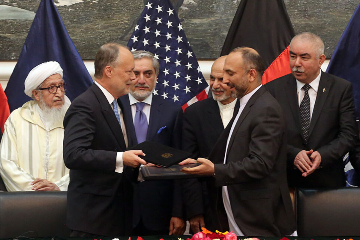 Within minutes of the signing, Afghan security officials signed a similar accord with NATO that will allow 4,000 to 5,000 non-US NATO forces to remain to assist with training the 350,000-strong Afghan military and police.