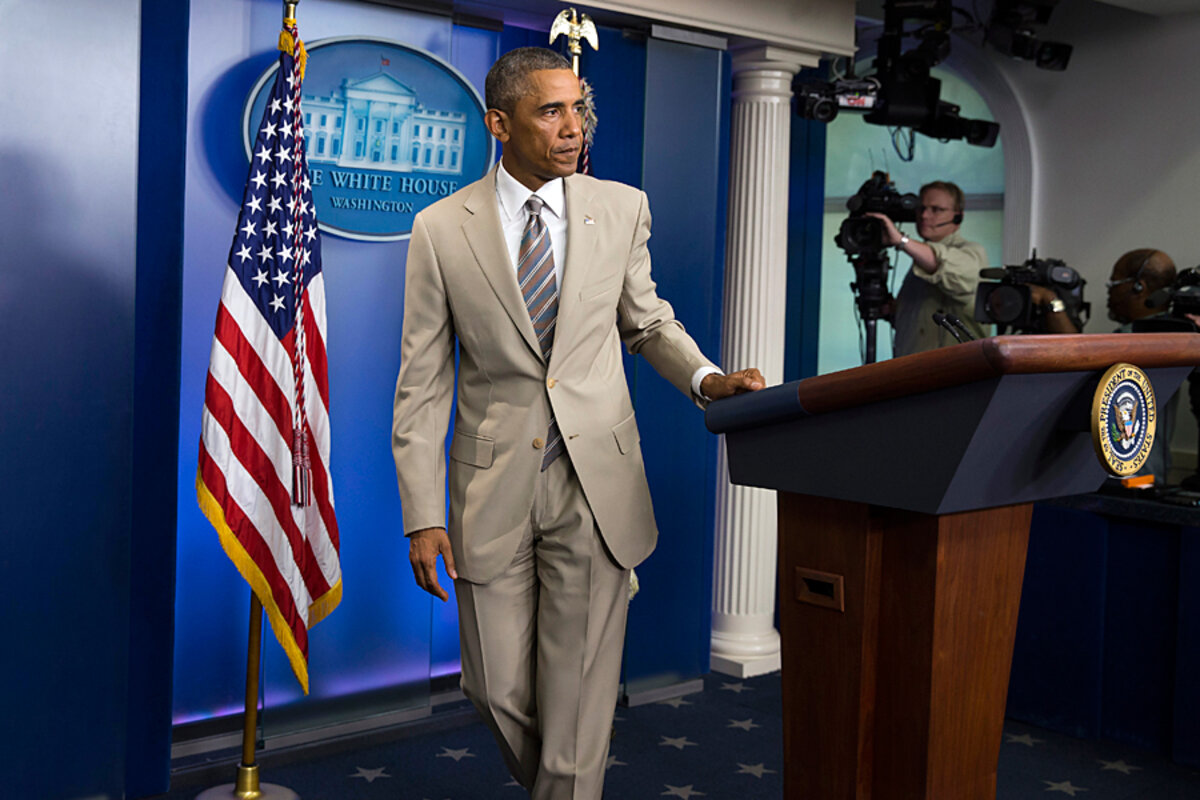 President Obama wore a tan suit on Thursday during his press conference on the situations in Syria and Ukraine. Social media erupted at his sartorial choice: You鈥檇 have thought the leader of what used to be called the free world was wearing a sleeveless flannel shirt and a ball cap.
