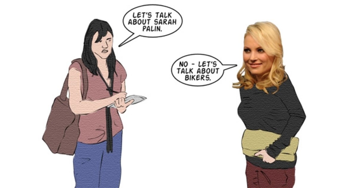 They talked about a lot of stuff. Her campaign blog, the campaign trail, the New York Times, Dita Von Teese (the former Mrs. Marilyn Manson), swimming, high heels, and her love for bikers.