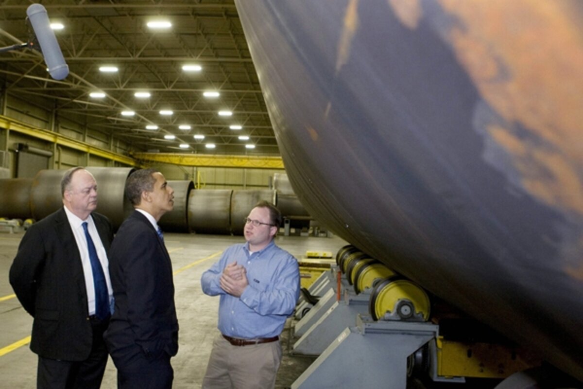 At the Trinity Structural Towers wind energy plant in Newton, Iowa, President Obama announced that the legislation he's pursuing will move the country toward energy independence while preventing the "worst consequences of climate change".