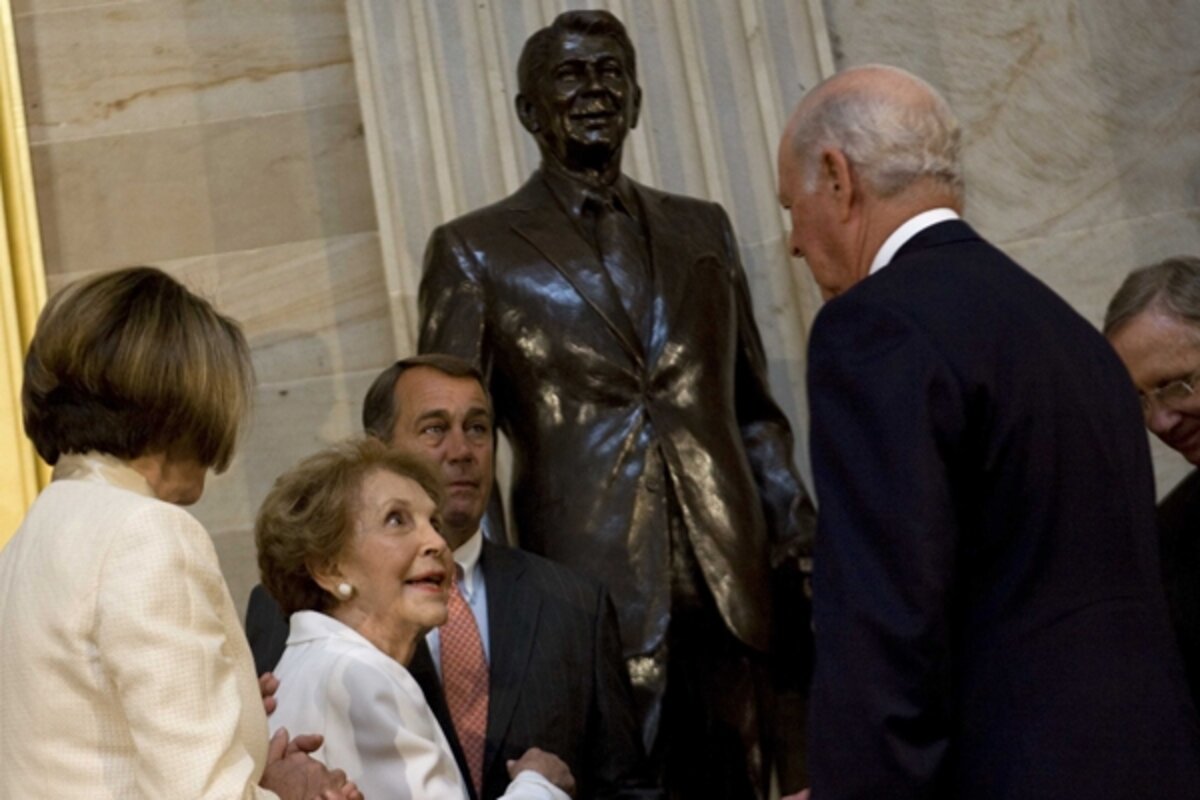 Giant smiling Ronald Reagan statue unveiled by Nancy Reagan
