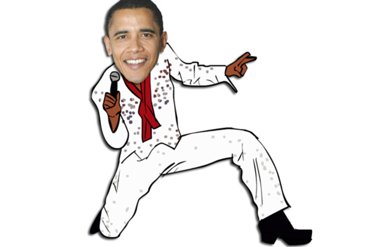It's almost as though President Obama came out in sideburns, a white sequined jumpsuit and started singing "Viva Las Vegas" because the president sounded a bit like Elvis Presley today.