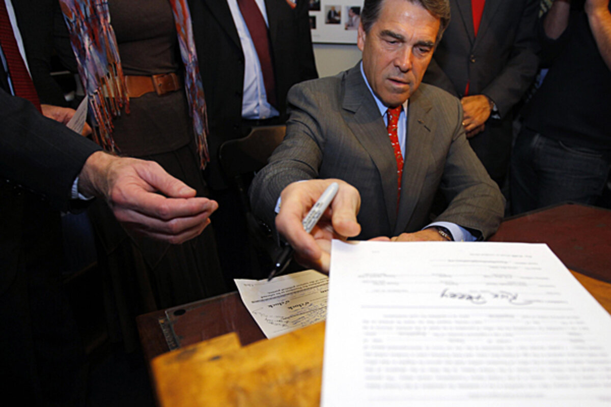 The YouTube clips of the speech, viewed by more than 1 million people, show Perry praising New Hampshire for its 鈥淟ive Free or Die鈥 logo and gleefully touting his flat tax plan as he waves his proposed postcard-size tax form. He jokes that even Treasury Secretary Timothy Geithner could get his taxes done on time with this form 鈥 and unlike another candidate鈥檚 plan, his wouldn鈥檛 expand the state鈥檚 tax footprint by 9 percent.