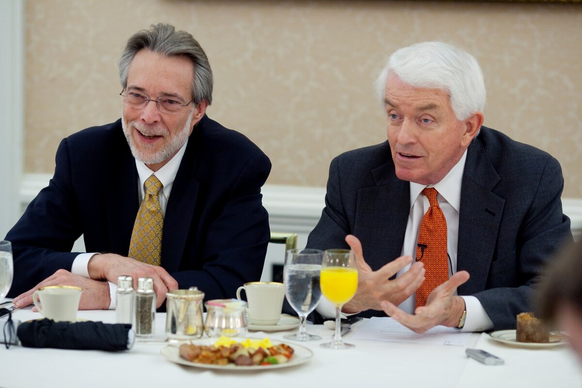 Business advocates Thomas Donohue and Bruce Josten are president and executive vice president, respectively, of the US Chamber of Commerce. Mr. Donohue and Mr. Josten were guest speakers at the April 8 Monitor breakfast in Washington.