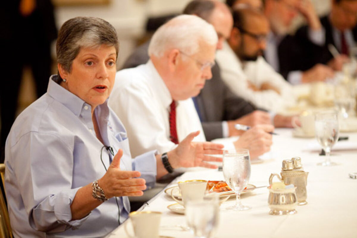 Homeland Security Secretary Janet Napolitano was governor of Arizona before taking her current post. She was the guest at the Aug. 30 Monitor breakfast in Washington.