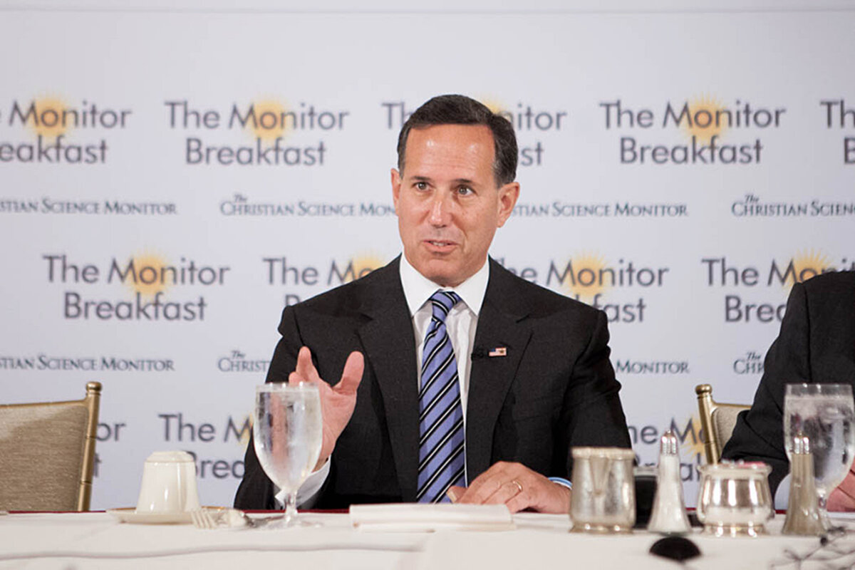 鈥淎 lot of things that happen six, seven months before an election sound big at the time but in the end don鈥檛 turn out to be very consequential,鈥 Mr. Santorum said Monday at a Monitor-hosted breakfast for reporters.