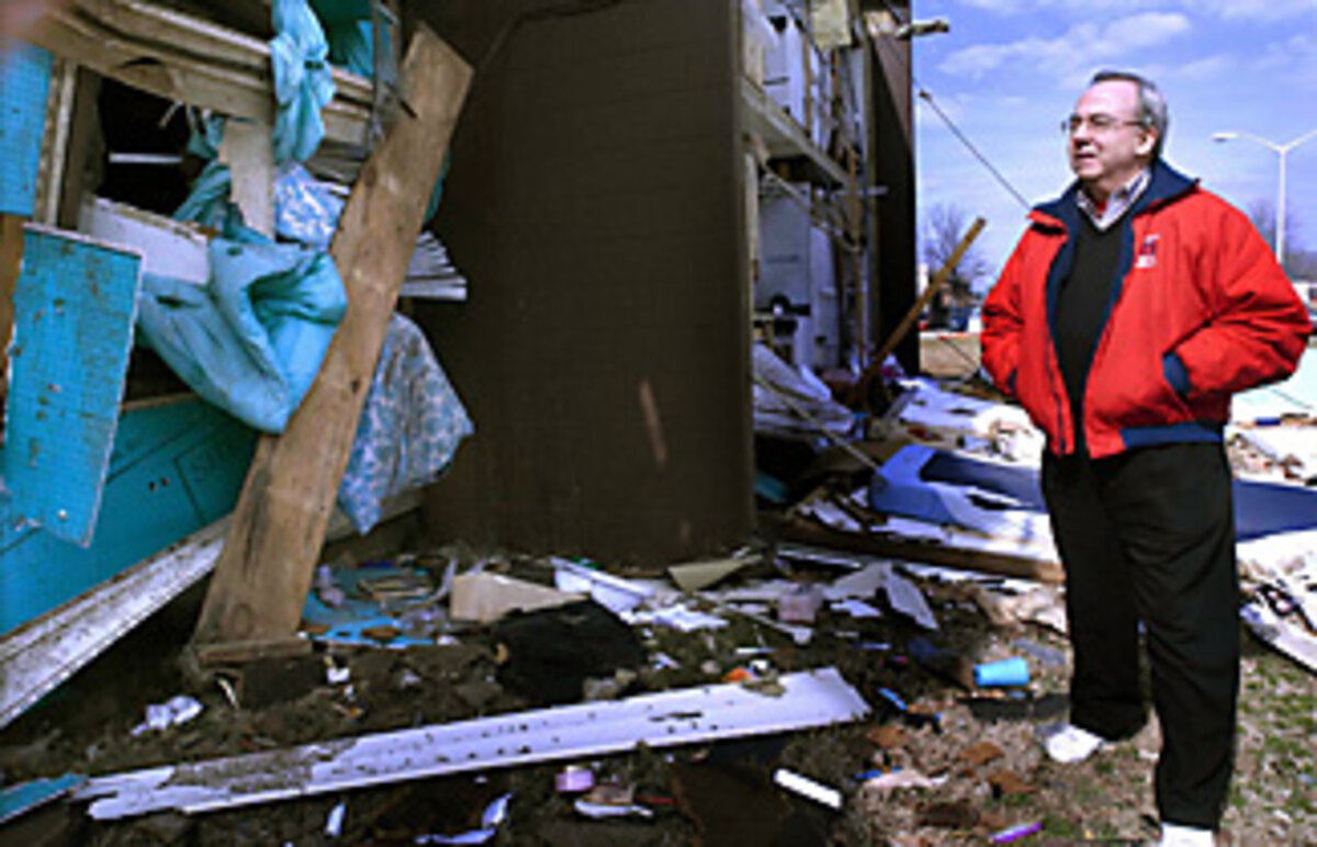 David Dockery perches on the edge of a chair, elbows on knees, a red Union jacket warming his drawn face and tired eyes. He was on campus when the tornado struck around 7 p.m., meeting with two deans to discuss what's always on his mind 鈥 Union's future. Since he became president in 1995, Dr. Dockery has pushed an ambitious 25-year master plan. He stares at the floor as he admits the plan was almost halfway complete, with $60 million in renovations over the past decade. This tornado was "15 times" worse than the previous two, he says, made more cruel by its impact on the students' personal lives. Since then, his only thought has been how to give back what was taken 鈥 clothing, papers, a place to live, an education.