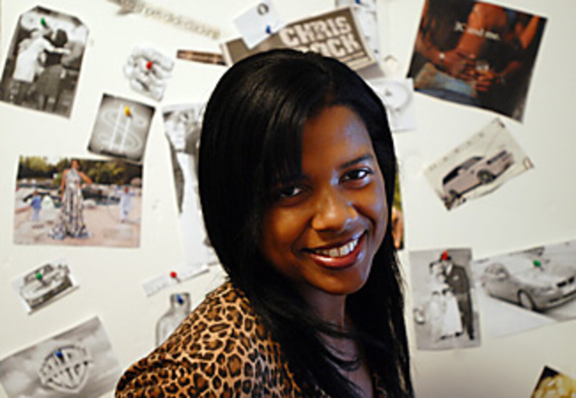 Maryann Reid's "dream board" is propped on a plastic lawn chair in her living room in Brooklyn. Magazine clippings cover the entire poster board: a drawing of a pile of books, a photo of a Range Rover, the phrase "Gucci shoes click-clacking."