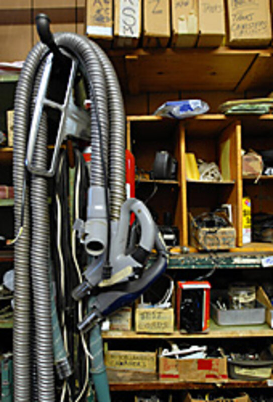 The way he utters the word leads me to ask about the evils of plastic. His excited cadences take me back to childhood visits when 鈥 dislodging socks or Barbie clothes from a clogged hose 鈥 he'd counsel my mother on the need for careful attention. "You can't fix half the new vacs," he says. "Everything's plastic now, even the lever that releases the handle that you have to step on every day.... They snap off. By the time I order the parts and charge labor to repair it, you don't want to do it. I'm just waiting for them to tell me they can't fix my car someday!"