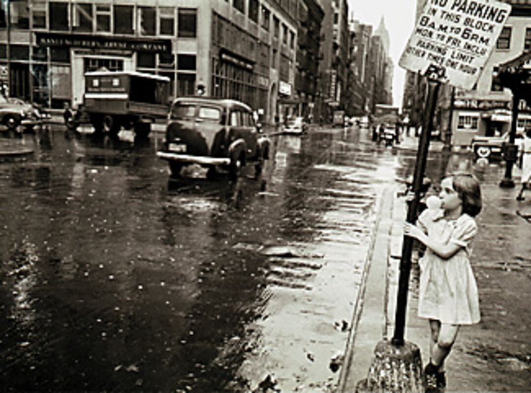 For 60 years, on and off, Cherry has been photographing the enormous changes and small mood shifts of New York City streets. As a young woman, working for prominent magazines of the '40s and '50s such as Parade and Pageant, she caught a world that was on the verge of vanishing: She shot cattle being herded across the cobblestones of the Meatpacking District and hushed crowds watching the tearing down of the Third Avenue El. Now approaching 90, she is still fascinated by the city's changes: In a rapidly gentrifying Manhattan, she recently shot a weary Mexican father on a stoop, his sleeping daughter draped across his lap.