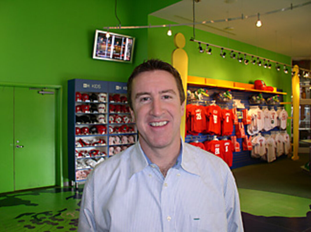 Visiting teams often sit on their dugout step to watch the ribbing. "I get the feeling they like coming to Philadelphia because of the Phanatic," Burgoyne says. When he's through with the players, he'll kidnap a choir member. Or her microphone. "There are a lot of ways you can wreak havoc on the field before the game," he chuckles, as if he only watched the hijinks instead of perpetrating them.