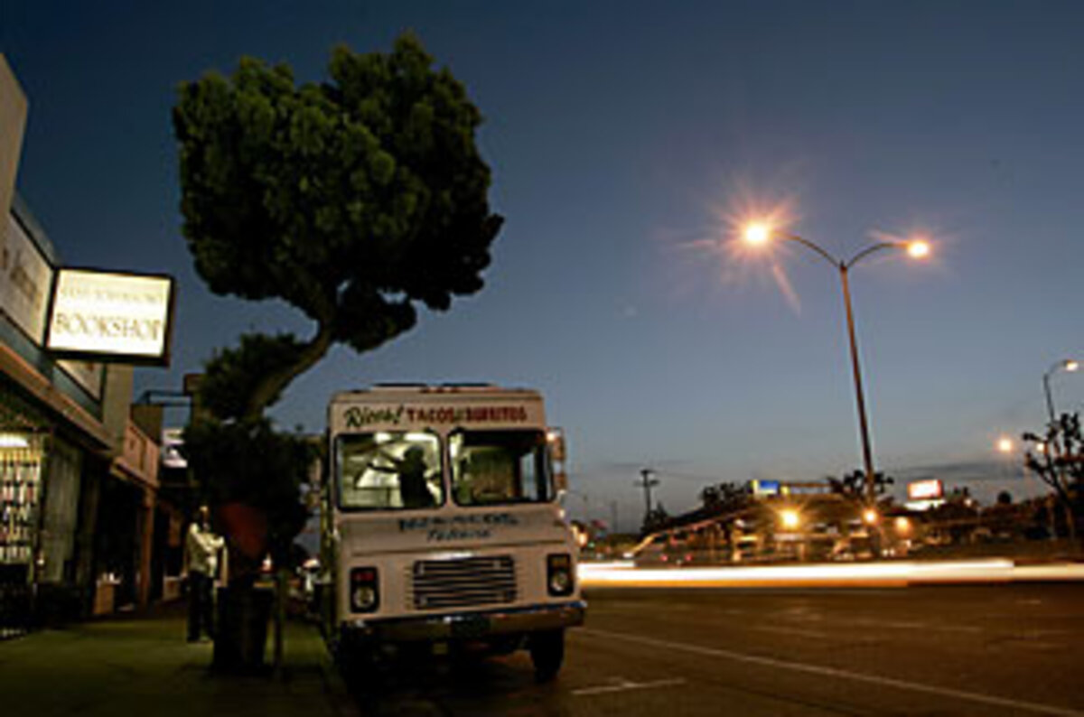 "The whole taco truck culture in L.A. fills a void left by traditional restaurants," says Aaron Sonderleiter, whose website trumpets the rallying cry, "Carne asada is not a crime." He says the lower price of truck-vendored food (tacos for a buck, giant burritos for $2.50), longer hours of operation, and the outdoor venues create oases of neighborhood camaraderie, social interaction, and safety that are sorely needed in a city dominated by car travel, gang crime, and little pedestrianism and public transportation.