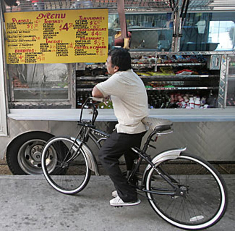 "Thousands of Angelenos ... have long gathered at the trucks, in many cases since childhood, for quick carnitas burritos or mouthwatering cemitas, ... fired meat and other gut-busting goodness," says a recent editorial in the Los Angeles Times. "Call them what you will: roach coaches, loncheras, snack vans ... but taco trucks are a rich part of our region's heritage."