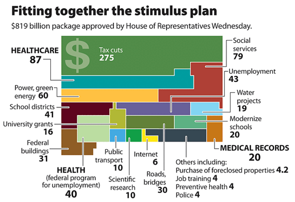Those are just two of the healthcare initiatives included in the omnibus $819 billion stimulus bill. They're aimed at pumping cash into the ailing economy at the same time they shore up the nation's unravelling healthcare system.