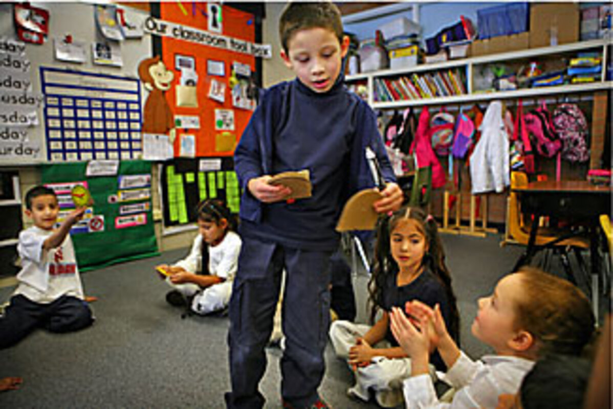 In Nikolaus Namba's first-grade classroom, that means that his students have worked over the year to create 鈥 and refine 鈥 a classroom code of conduct (which includes items such as "don't hit people" and "we will not play with hair" written in childish handwriting on Post-it notes mounted in the front of the class) and goals of the week. Students use what Mr. Namba calls "power voting" with the Post-its to get a voice in these and other classroom decisions 鈥 hoping, ultimately, to give them a greater sense of independence and ownership of their learning.