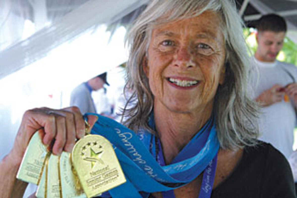 Daniela Barnea glowed at the games as she ducked to receive yet another gold medal around her neck. She'd just broken the 41.39-second record for the 65-69 age group in the 50-yard butterfly, which had been in place since 2003. This was on top of breaking several other records.