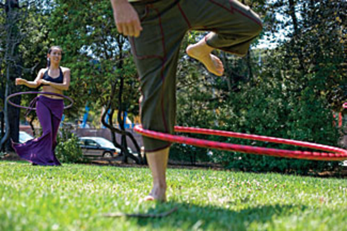 It's a common sight in San Francisco – the green grass of a neighborhood park is accented by brightly colored hoops twirling at improbable angles around people grooving stylishly to dance music under the afternoon sun.