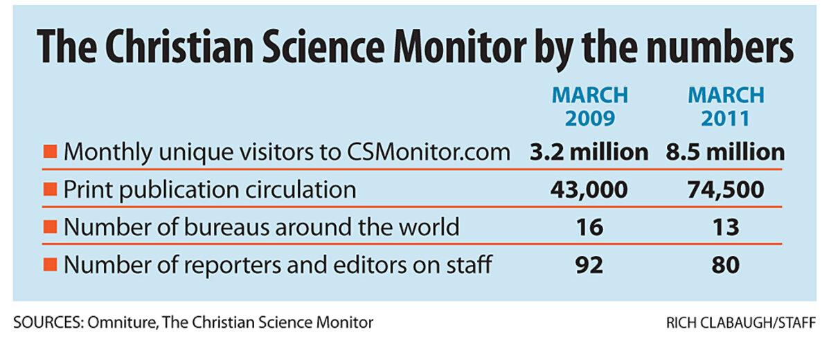 Despite the media focus on blogs and the far left and right, top news sites on the Web in the new media world look a lot like the old media world. In March they were, according to The Nielsen Company rankings for most popular current events and global news sites, in order: Yahoo News websites, CNN digital network, MSNBC, AOL News, NYTimes.com, Fox News digital network, Tribune Newspapers, Huffington Post, ABCNews digital network, and Gannett Newspapers and Newspaper Division. Yahoo and AOL may be new-media names, but they have some deep old-media roots. Yahoo has some original content (its own set of blogs) and some real editors deciding what is news on its site, but much of what is there also comes from the legacy world. And while AOL has waded into local journalism with dozens of small "hyperlocal" newsrooms spread across 18 states that it calls "Patch," underneath are a lot of stories drawn from the Associated Press and Huffington Post. It could be argued that the only true "new media" entry on the list is Huffington Post, which wants to put more money into Patch and act more like a legacy outlet. The next 10 top sites, by the way, look much the same with the Los Angeles Times, CBS News, and the BBC in the fold. (The Monitor was 47th in March Nielsen rankings.)