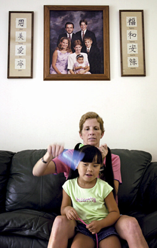 After Jeff's death, Sue reapplied to adopt Hannah as a single parent. In August 2002, the family traveled to Nanning to bring her home.