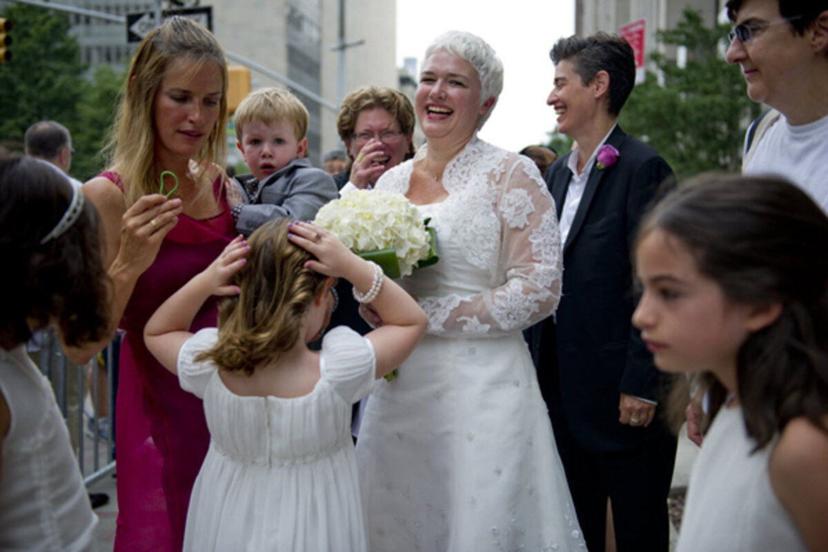 The survey showed that even among groups with majorities opposed to gay marriage, the opposition is diminishing. In 2010, 66 percent of Republicans and 72 percent of conservatives said they opposed gay marriage. In 2012, 55 percent of Republicans and 63 percent of conservatives said they opposed gay marriage.