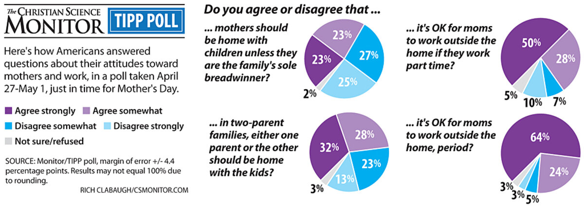"In the '70s, women in the workforce who were also mothers were pathmakers. They were 鈥 breaking ground," says Barbara Risman, professor of sociology at the University of Illinois at Chicago and an executive officer with the Council on Contemporary Families. "Now your average mother is in the workforce. The stigma and revolutionary fervor is behind us, and women today feel they have a right to some workplace flexibility.... That's a really big change."