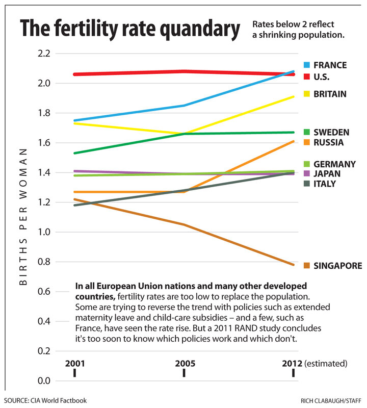 But the economic implications of a shrinking population are worrisome to many economists and political leaders. When the national fertility rate falls below the population replacement rate of 2.1 babies per woman 鈥 as it has in developed countries including Japan (1.4), Singapore (0.8), Norway (1.7), and Britain (1.9) 鈥 long-term plans for productivity and the social safety net become inviable.