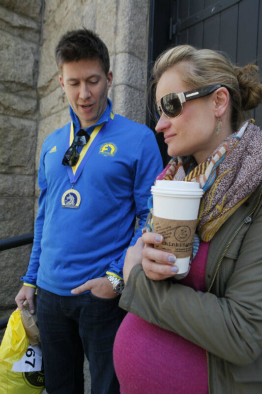 His wife Paulina, who is 8-1/2 months pregnant, was in the grandstand by the finish line, across the street from where the first bomb exploded. She joined the crowds of people being directed away from the scene.