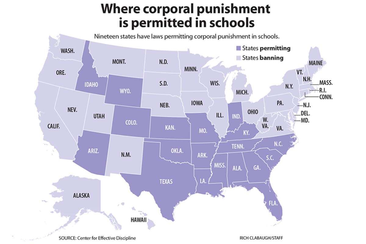 Nineteen states allow it in schools. And while many districts in those states decline to use corporal punishment, others embrace it. US Department of Education statistics show that 200,000 students are paddled every year, and Florida Department of Education statistics show that in some school districts in the northern part of the state more than 1 out of 10 students is paddled. The Arlington school district outside Memphis, Tenn., recently voted to reinstate corporal punishment, with board members saying that teachers should have all possible tools at their disposal.