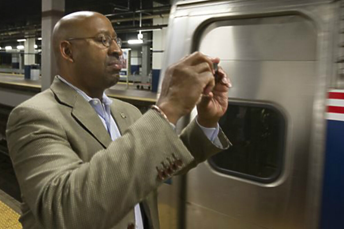 In Philadelphia on Monday, Nutter stood on the platform, greeting passengers and crew members. He pulled out his cellphone and took pictures as the train rolled out just after 6 am.