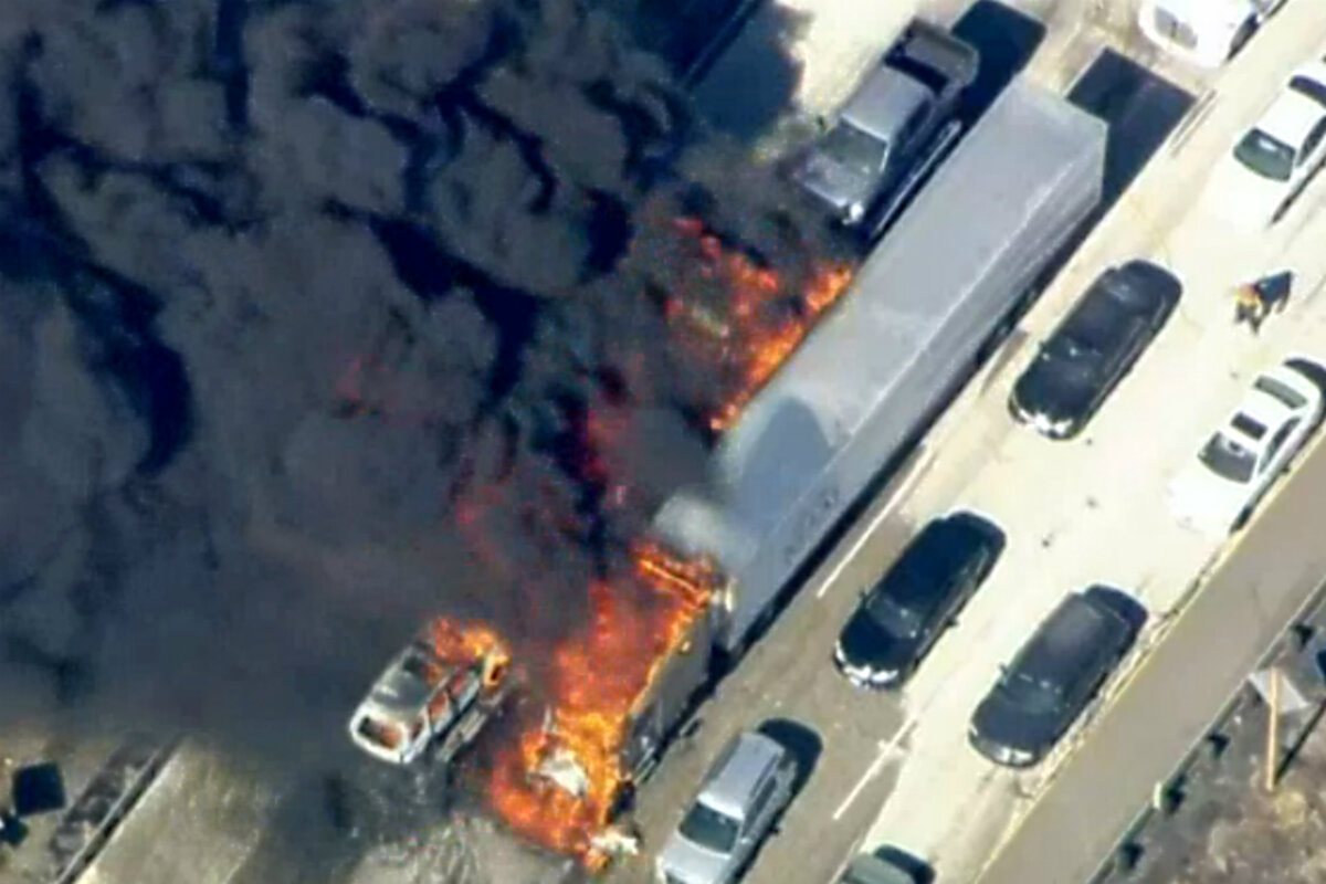Meanwhile, a car-carrying tractor-trailer rig and its cargo of eight automobiles went up in flames. So did a boat being transported by another vehicle.