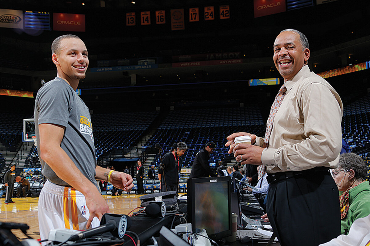 Even Curry’s speech seems a mixture of influences – not quite a Southern drawl, not quite the rhythm of urban playgrounds, not quite upper-middle-class suburban, but with hints of all three. It’s undoubtedly at least part of the reason he is as comfortable schmoozing with high-rolling season ticket holders as he is debating the merits of various hip-hop artists with middle-schoolers during his visits to inner-city Oakland public schools.