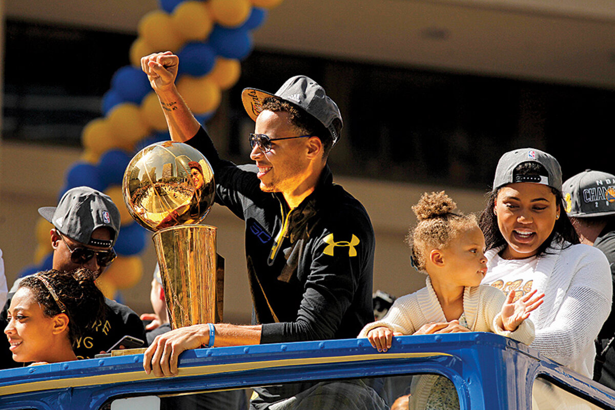 Curry is at once childlike, zipping around on the court with his mouth guard hanging out like a child’s pacifier, and impressively mature, showing himself to be a devoted husband and a doting father to his two daughters, Riley, 4, and Ryan, 10 months. When Curry brought Riley to a post-game press conference during the playoffs last season, she quickly upstaged her dad by sliding under a table and poking her head out at the reporters and generally acting like a precocious tyke. The scene so endeared both Currys to the public that when a few reporters complained in print that Riley’s presence made it difficult to conduct a businesslike press conference, the public backlash made them look like humorless grinches.
