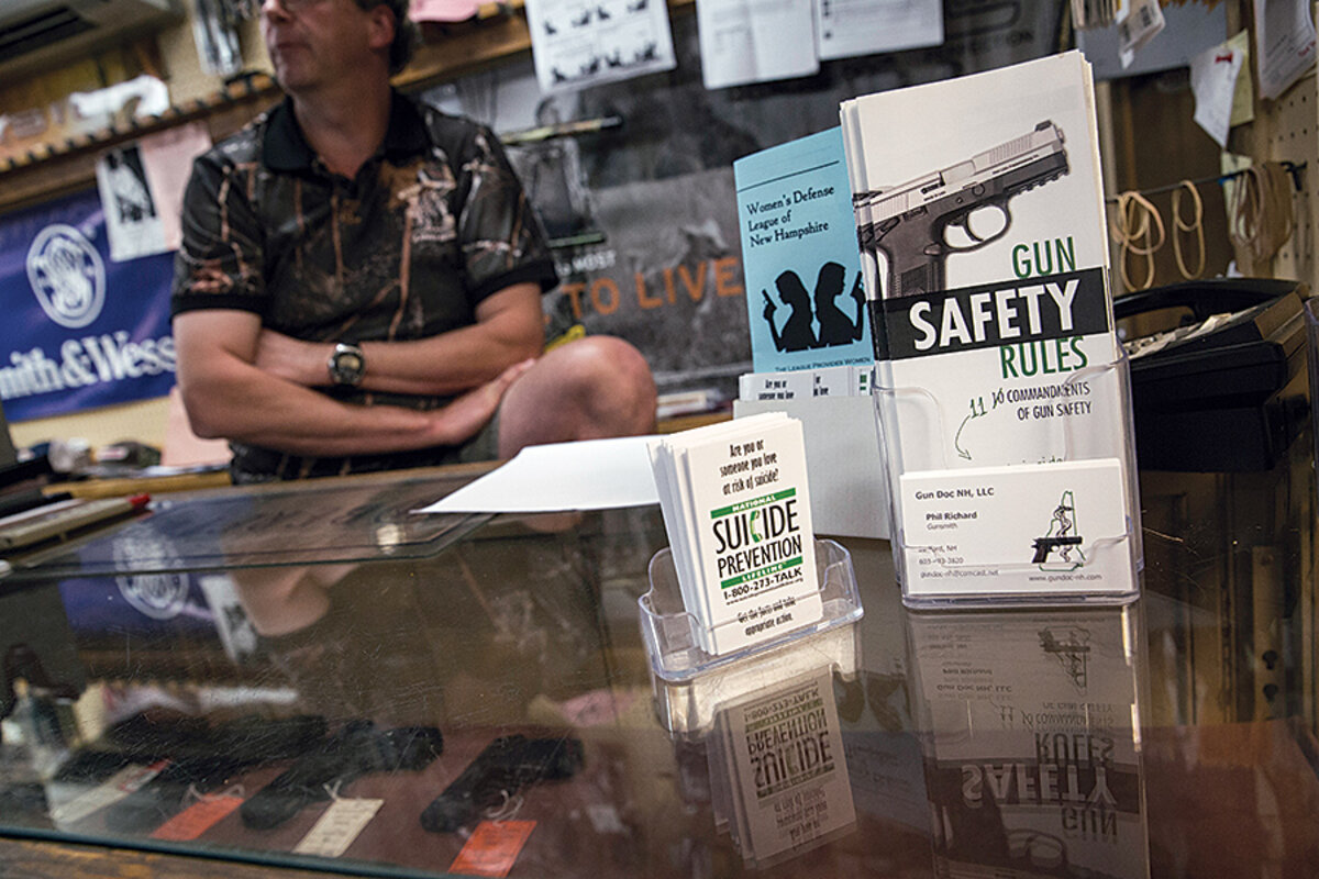 His group, the New Hampshire Firearm Safety Coalition, asks gun sellers and firing ranges to watch out for any buyers who might be at risk. It promotes the safe storage of guns at home. Its members look out for fellow gun enthusiasts in emotional crises, and encourage them to ask friends to babysit their firearms if they seem to have suicidal thoughts.
