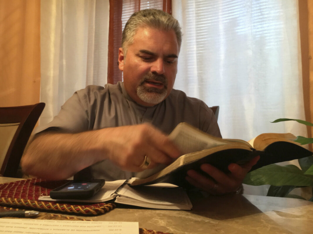 Barquero and his wife, Lucy, conduct weekly meetings by telephone with people who are afraid or unable to go to church. They also make occasional home visits around Houston.