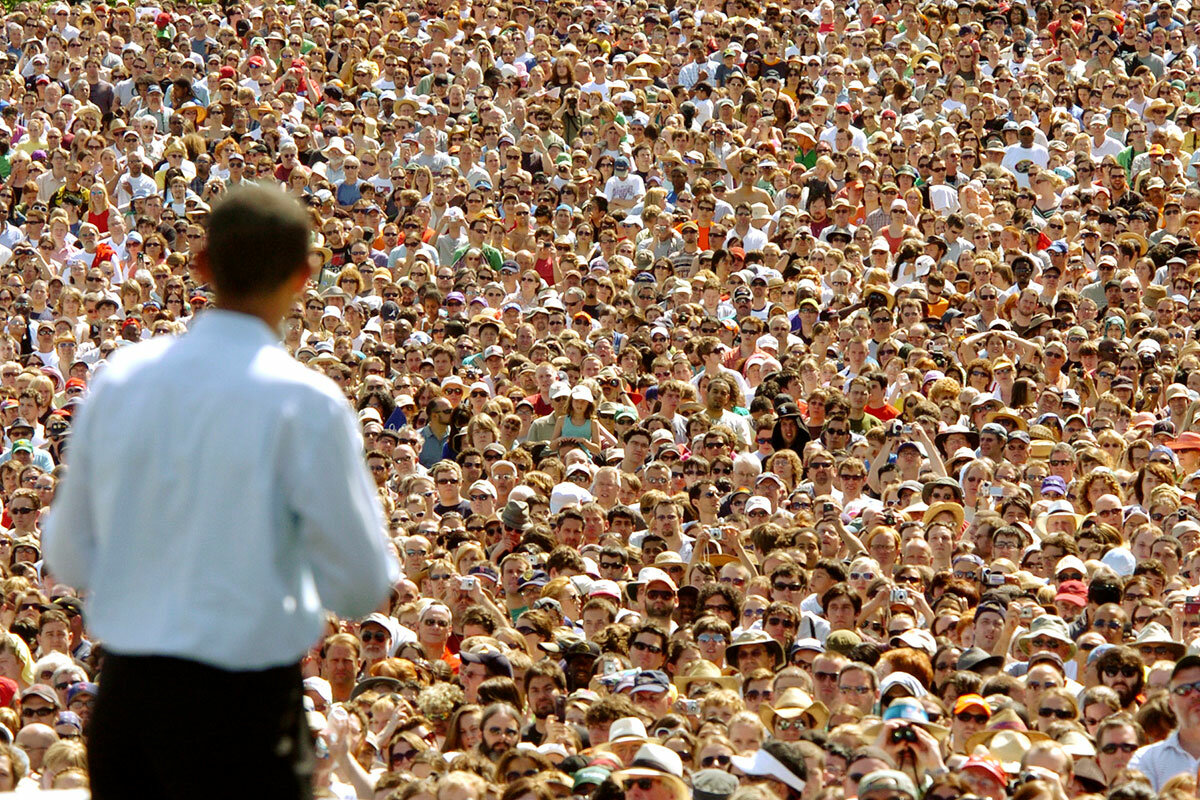 But according to Ms. Maghbouleh, a 2008 Associated Press photograph of candidate Barack Obama visiting the city sums up the paradox. In the stunning picture, President Obama gazes out 鈥 on a sea of white faces.