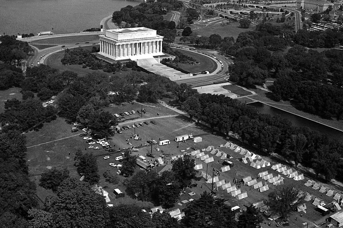 The base camp was the emblem of the Poor People's Campaign of 1968, the sprawling camp on the National Mall lost its chief architect, The Rev. Martin Luther King, Jr., when he was assassinated in Memphis, Tenn., on April 4. After a police crackdown on the remaining campers in June of that year, the camp and its populist struggle against economic inequality faded into the whir of Woodstock and war.
