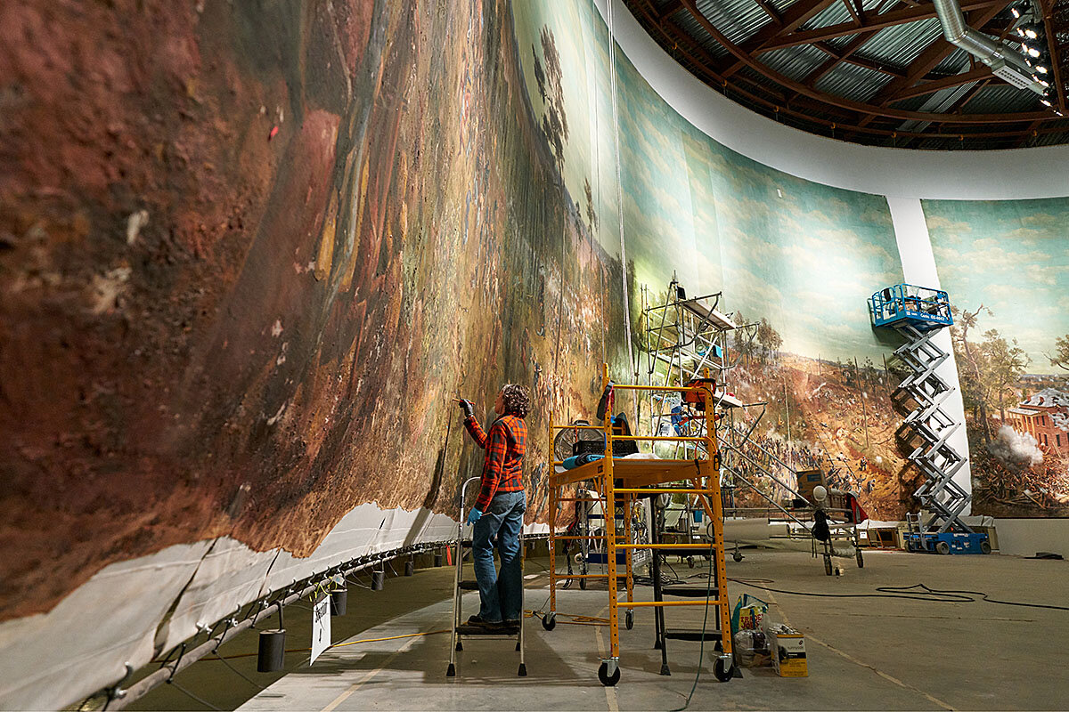 For its latest restoration, the painting had to be extracted from the building by cutting holes in the roof. Sections were rolled up 鈥渓ike giant Tootsie Rolls,鈥 says Howard Pousner, a spokesman for the Atlanta History Center, its new home, which has a separate exhibit on turning points in the Civil War, along with a celebration of barbecue.