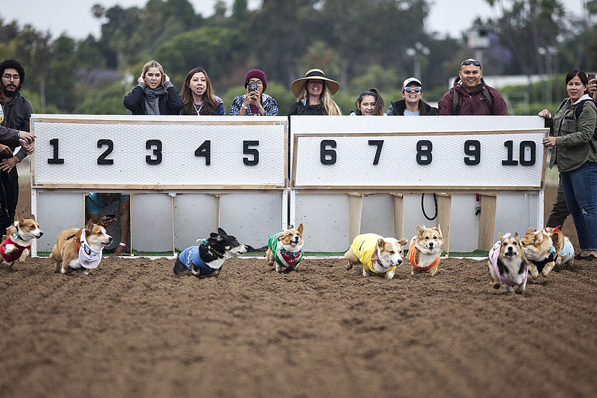 It鈥檚 a stumpede! Corgis hit the racetrack in California.