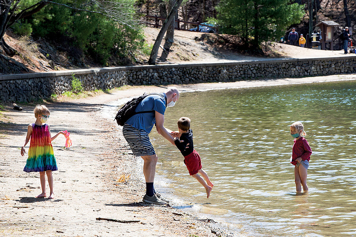 In two days at Walden, here is some of what I found: winter, and then summer, though just 12 days apart. An empty parking lot, and then one so full it was blocked. Kayakers, picnickers, swimmers in both wet suits and bikinis. Walkers in masks. Fishermen in waders. And a woman who emerged from the water to tell me of having visited Walden more than 500 times.聽