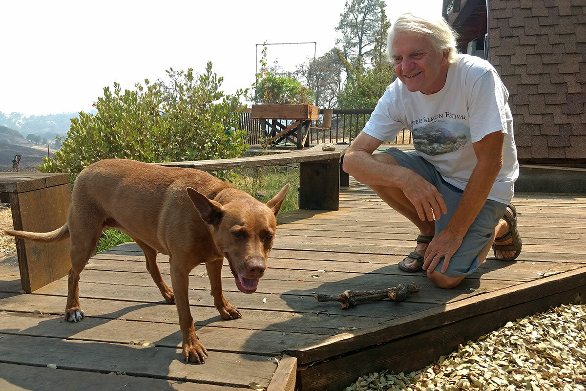 鈥淚f not for the dog, we might鈥檝e lost the house,鈥 says Mr. Britten, who installed the sprinklers and tank after a wildfire in 2016. He stood on his wooden deck looking down at hills charred the color of coal. 鈥淲ho knows, we might鈥檝e lost our lives.鈥