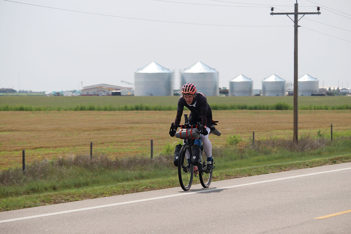 But others definitely are in a hurry. Peter May is a wiry, athletic 22-year-old from San Francisco. He paused briefly at a convenience store in Tribune, Kansas, to gulp several bottles of water and grab some fried chicken – his only food on a day in which he was pedaling 210 miles. “My personal best!” he exclaims. “My previous best was 125 miles” the day before.