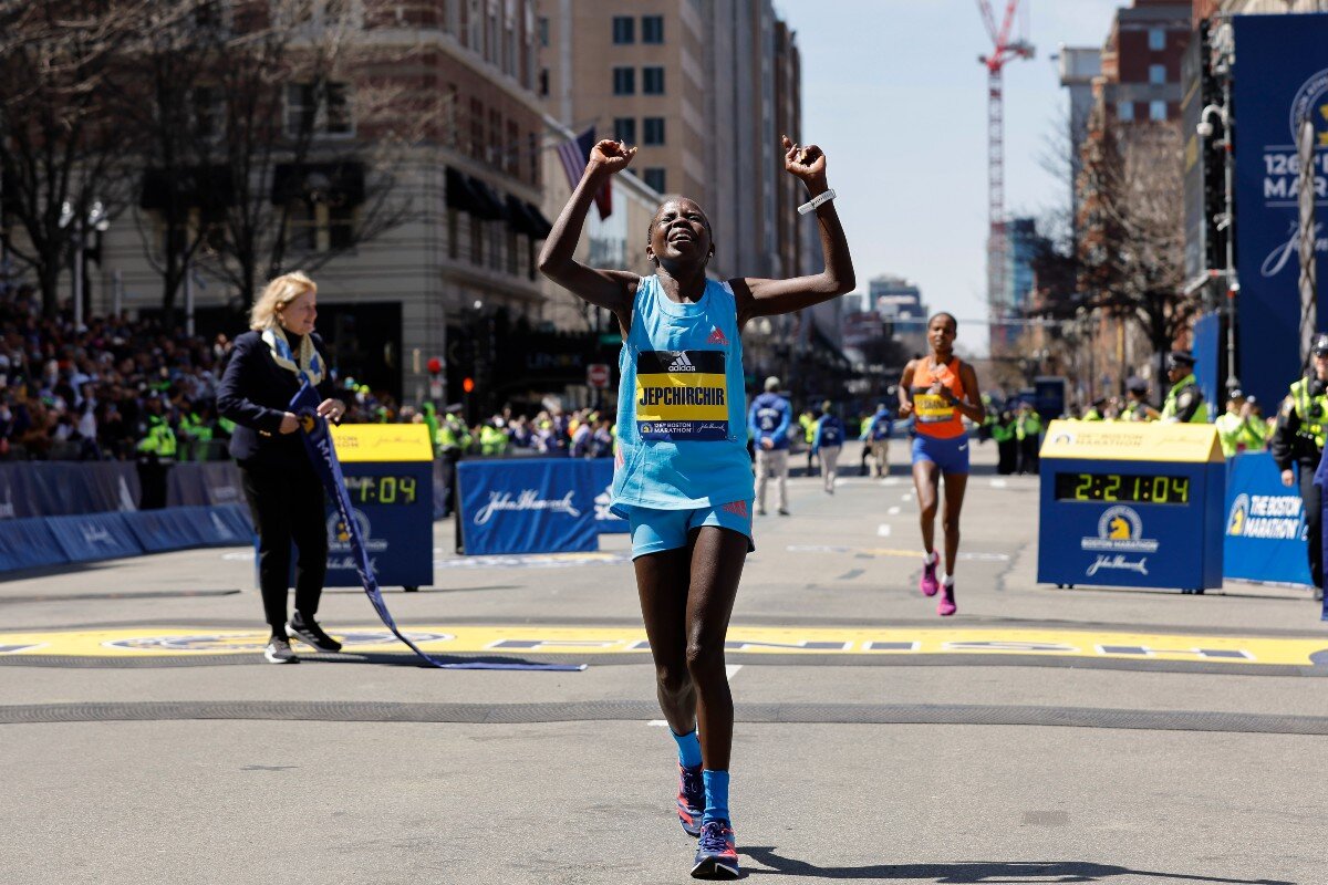 Peres Jepchirchir celebrated the 50th anniversary of the Boston Marathon women鈥檚 division by winning a see-saw sprint down Boylston Street on Monday as the race returned to its traditional Patriots鈥 Day spot on the calendar for the first time since the start of the coronavirus pandemic.