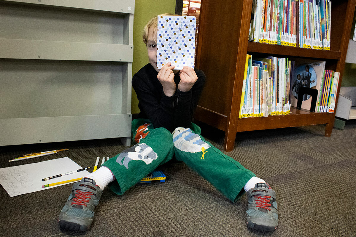 Today鈥檚 session is about ideas, she announces, though kids like kindergartner Cruzen Hartman are already off to the races. The son of the librarian has one book already on display; he鈥檚 crafting his latest tale in a polka-dot journal. It鈥檚 about cars that are born tiny and then grow big enough to hold humans, titled 鈥淭he Baby Cars.鈥