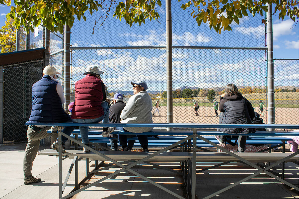 At the Tuesday game, fans behind the chain-link fence include some from Hilltop Reserve Senior Living Community in Denver, here for fellow resident Barb Johnson. She鈥檚 a recent recruit in her 80s known on the field as 鈥淢om.鈥 Nicknames are one expression of the togetherness that keeps the Peaches coming back 鈥 beyond the pursuit of mastering pop fly balls.