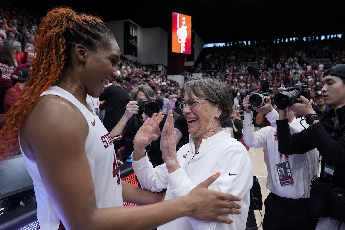 Stanford led 28-22 at the break having shot just 12 of 34 but was willed in the second half as former star players such as Jennifer Azzi, Chiney Ogwumike, Ros Gold-Onwude, and Jayne Appel-Marinelli were among those in attendance along with former U.S. Secretary of State Condoleezza Rice supporting the beloved coach.