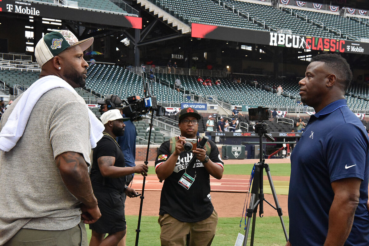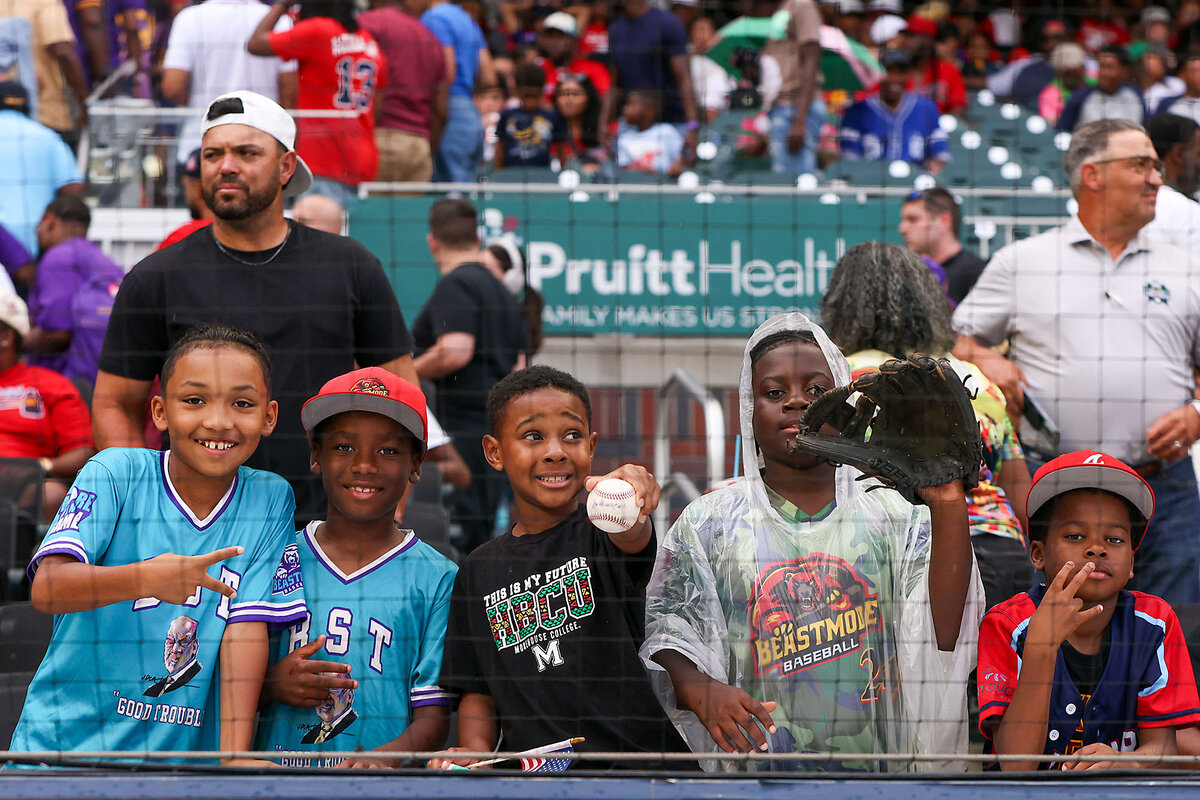 Despite those numbers, the classic was far from doom and gloom. The gates opened on a hot afternoon amid the smells and sounds of the ballpark, with a touch of class and HBCU brass from the Georgia Mass Band. On the field, sports legends and comedians abounded. Mr. Griffey was joined by a host of Hall of Famers, including CC Sabathia and Andre Dawson. The HBCU teams, split up into two squads from the 50 best and brightest players from the Black college ranks, were coached by a pair of beloved former Braves, Brian Jordan and David Justice. As far as laughs, there was Roy Wood Jr., a baseball enthusiast who has collaborated with MLB for years; and Lou Young, who played college football at nearby Georgia Tech and has since become an online viral sensation.