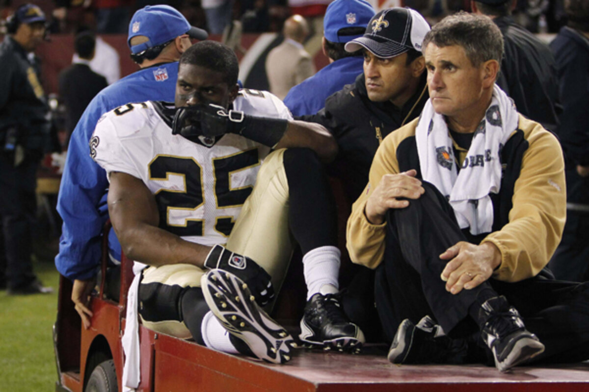 The New Orleans Saints had to battle high winds, an inspired San Francisco squad and an injury to running back Reggie Bush Monday night. But the defending Super Bowl champs prevailed over the 49ers, 25-22.