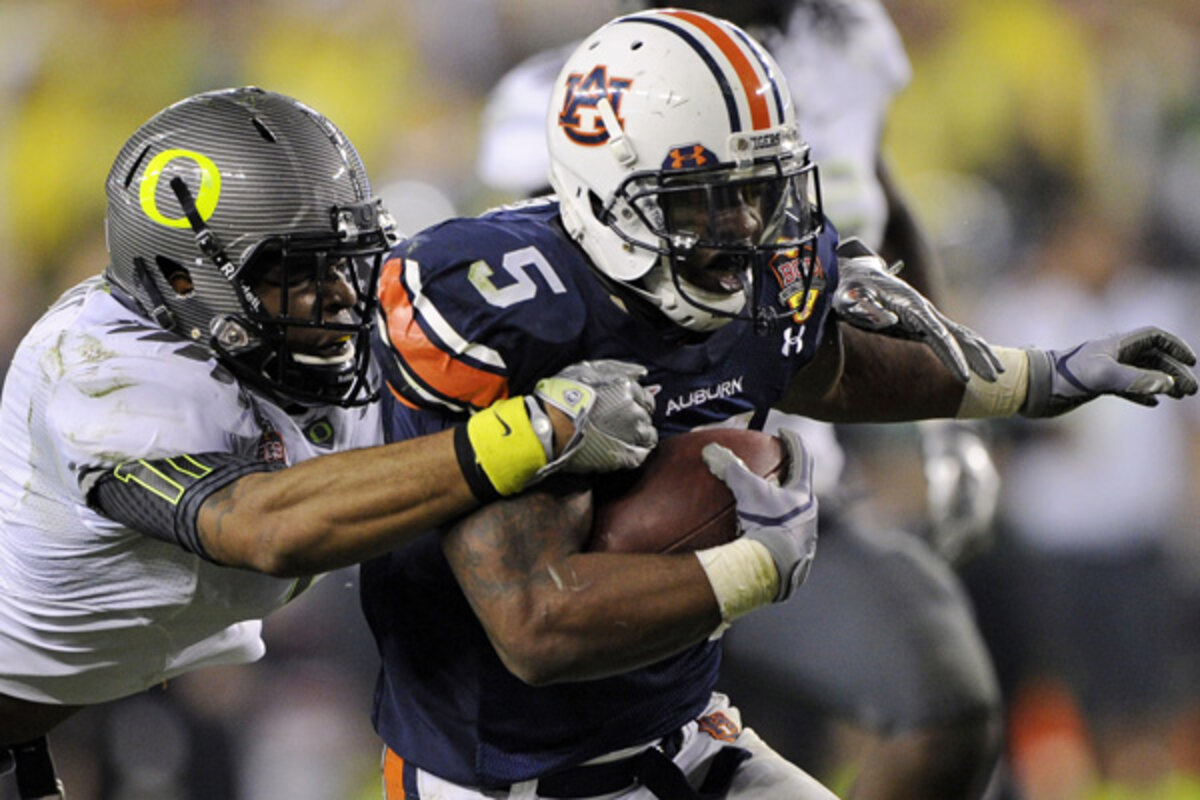 For Auburn, it was , thanks to the Ducks defense. Yes, the Tigers gained 519 yards of total offense, but the offensive star turned out to be , who rushed for 143 yards. That total included a huge play on the game-winning drive, one in which Dyer rolled over the top of an Oregon tackler, got up, and continued to run, resulting in a 37-yard gain.