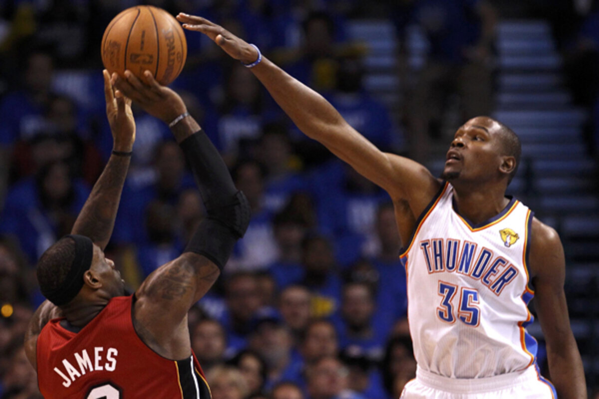 But arguably one of the most important efforts of the night was delivered through the picture-perfect defense of the Heat鈥檚 Dwyane Wade by the Thunder鈥檚 Swiss import Thabo Sefolosha. He stuck to Wade like fly paper in the second half and never let the Heat鈥檚 crunch-time specialist get rolling. And in general, the Thunder chose to guard the Heat鈥檚 鈥渄ynamic duo鈥 of Wade and James very differently than the Boston Celtics had in the last series. They didn鈥檛 let James go to double-team Wade. They spread their opportunistic defense out in the latter two frames and limited Wade to 19 points on the night, and James鈥攖hough he tallied 30 for the game鈥攆aded in the last quarter, hitting only 2 of 6 from the field.