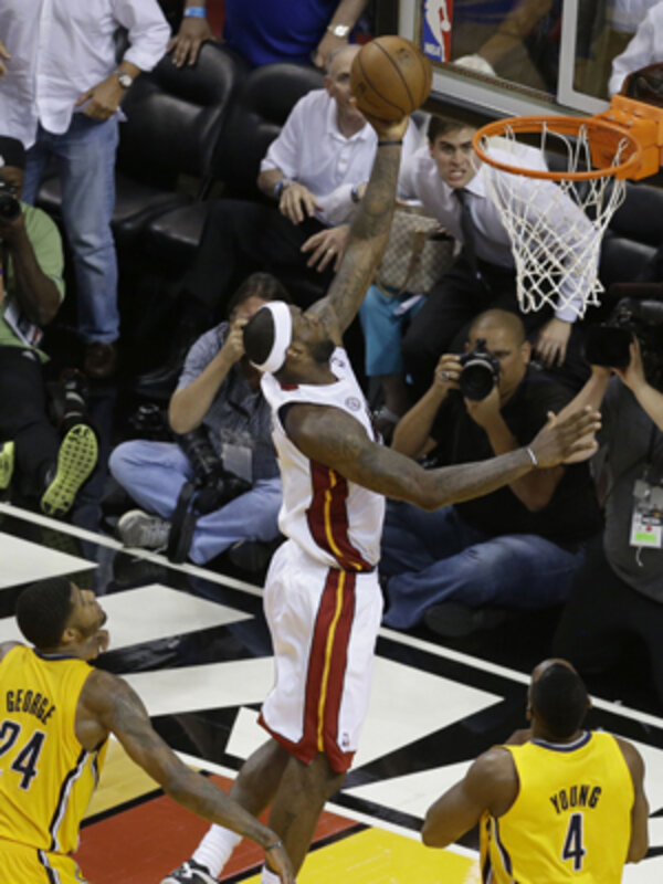 LeBron James drove the lane for an uncontested layup with just over two seconds remaining in overtime Wednesday night, leading the Miami Heat to a 103-102 win over the Indiana Pacers in a highly-entertaining Game 1 of the NBA's Eastern Conference finals.